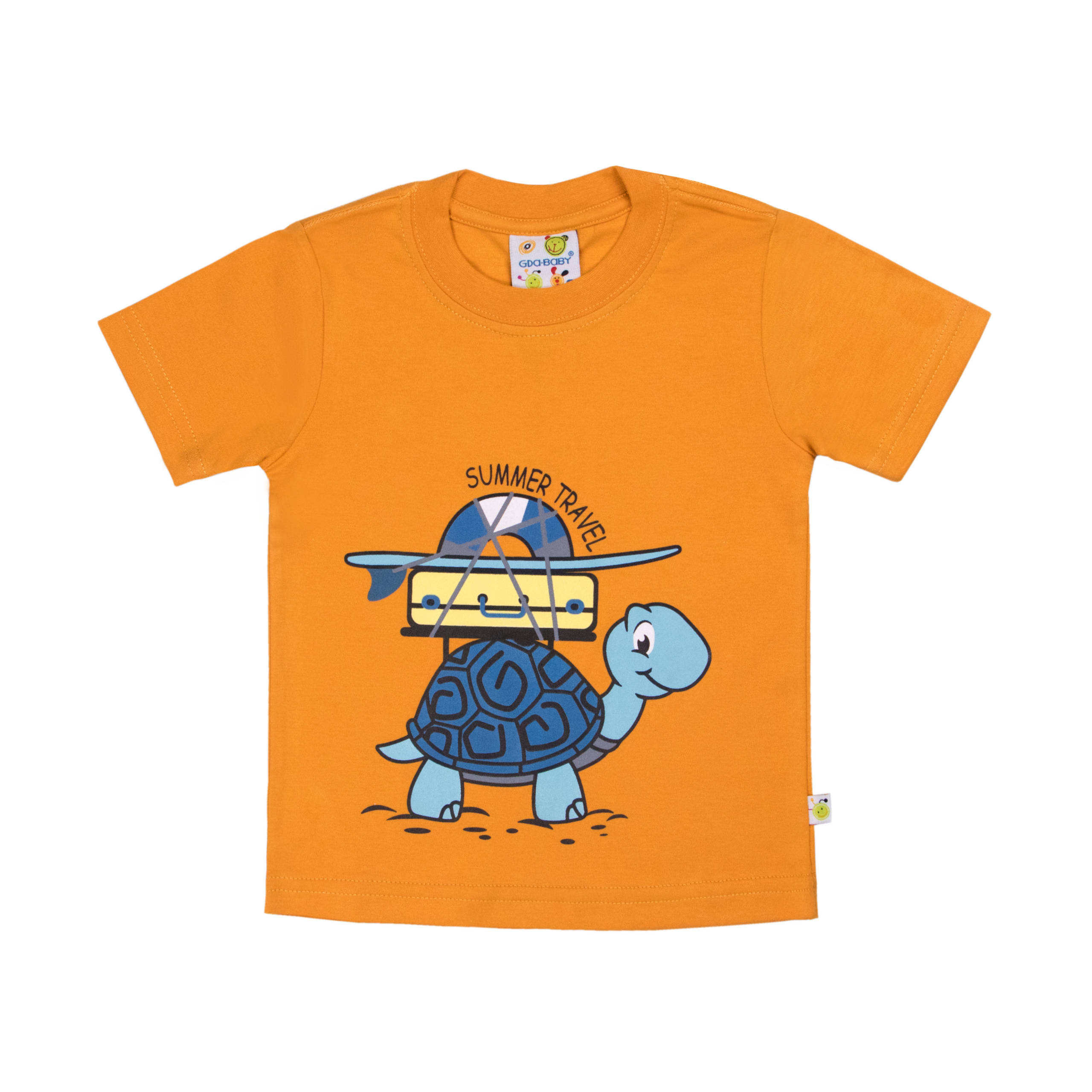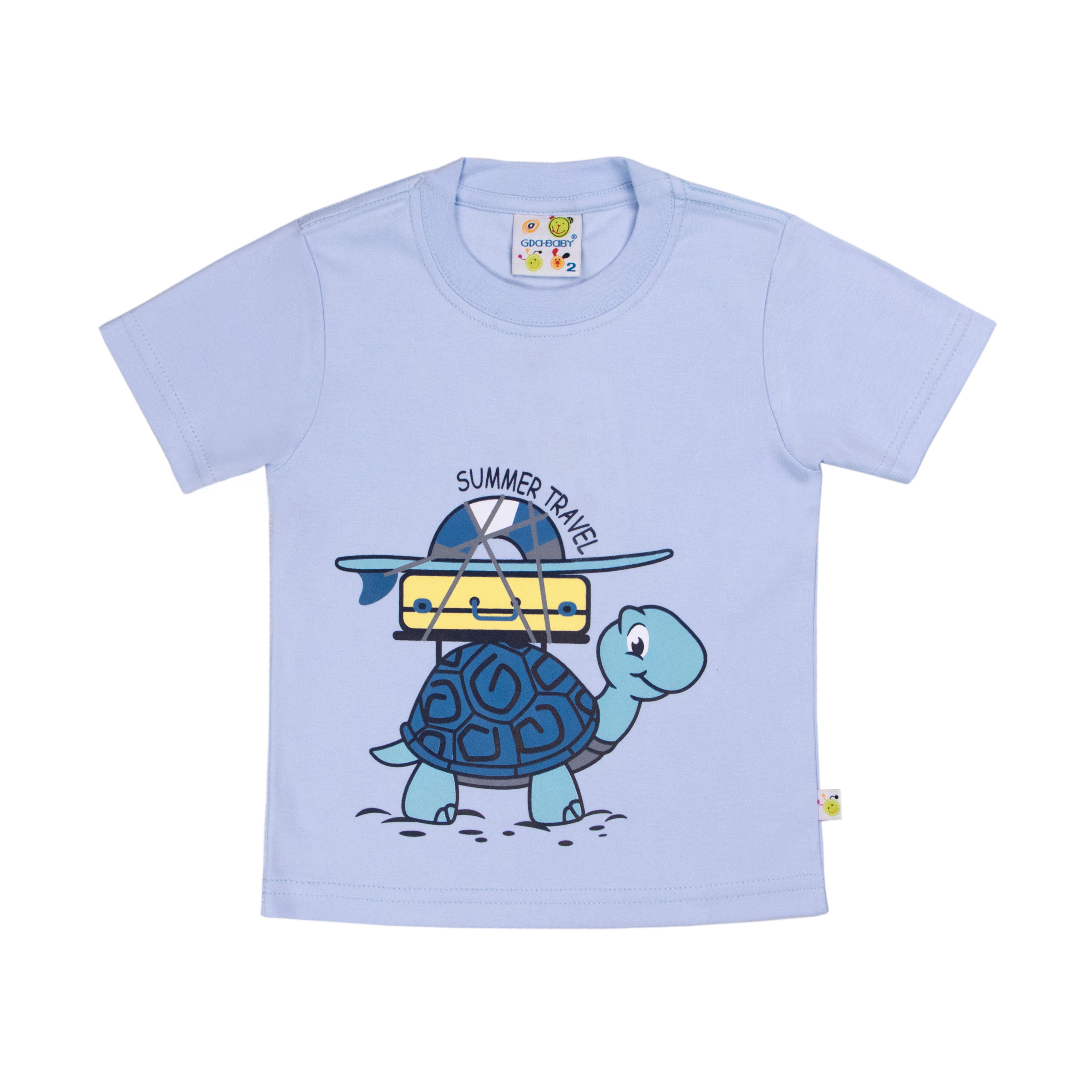 Polera manga larga de tela algodón en color entero con estampado de tortuga viajera en talles 1, 2 y 3.